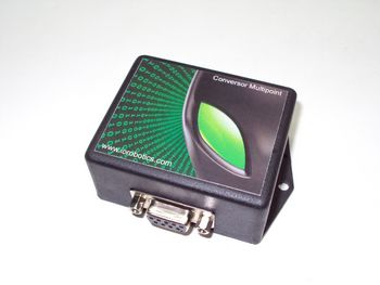 Converte o sinal RS232 do computador em sinal de rede Multipoint que foi criado para enviar dados de até 32 periféricos por até 1200 metros com um único par de fios .